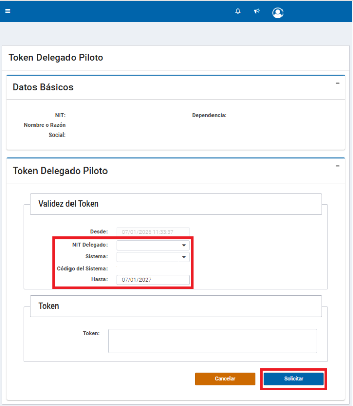 En esta sección, dirigirse a la opción “Gestor Token Delegado Piloto“, hacer clic y seleccionar “Token Delegado Piloto“.