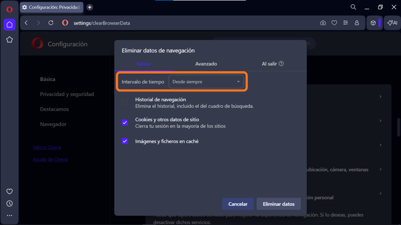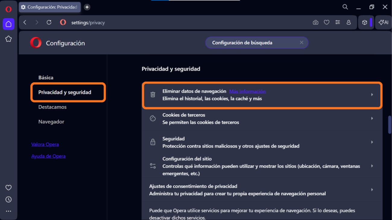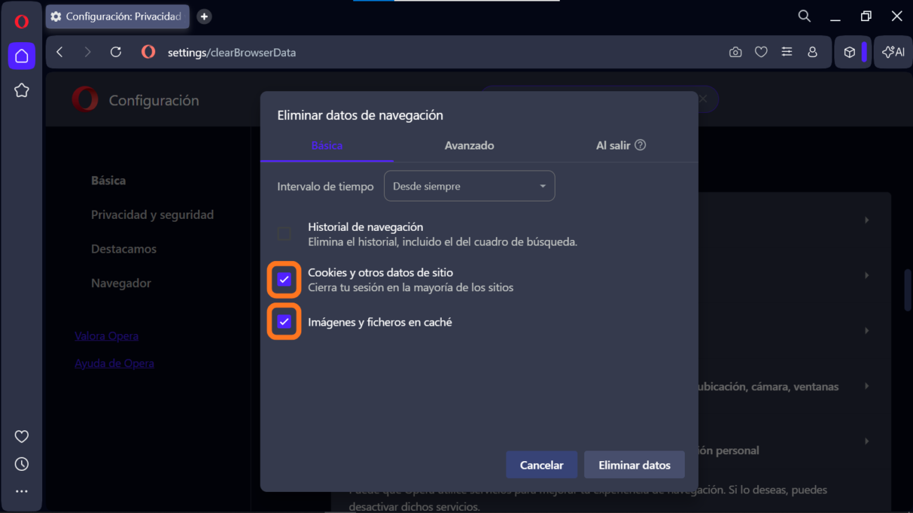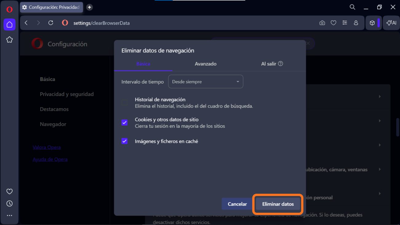 Pasos para eliminar o limpiar la memoria temporal en Opera