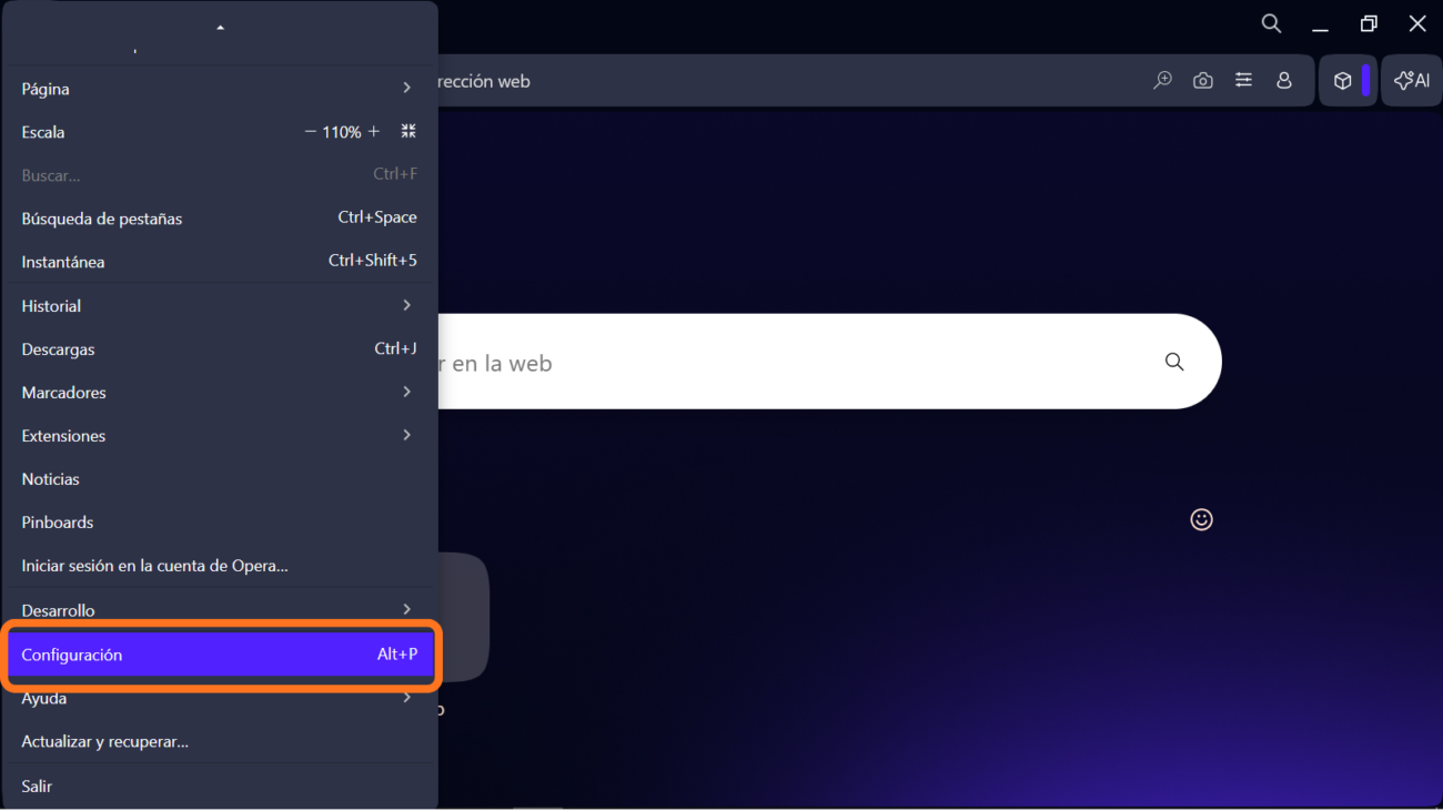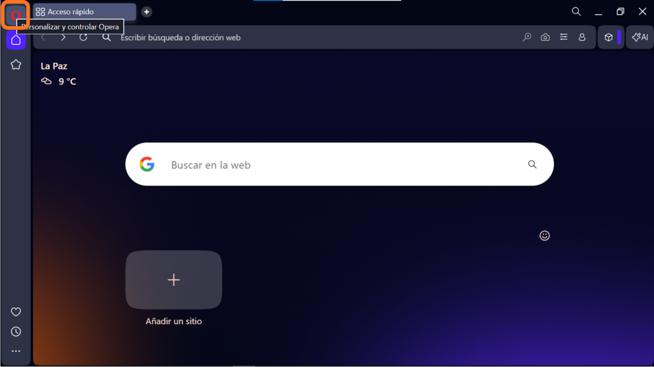 En la esquina superior izquierda, hacer clic en el logo rojo de Opera.