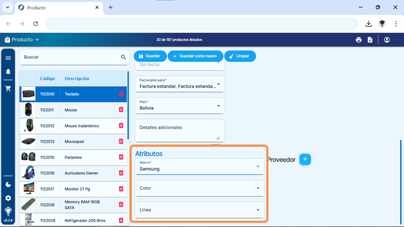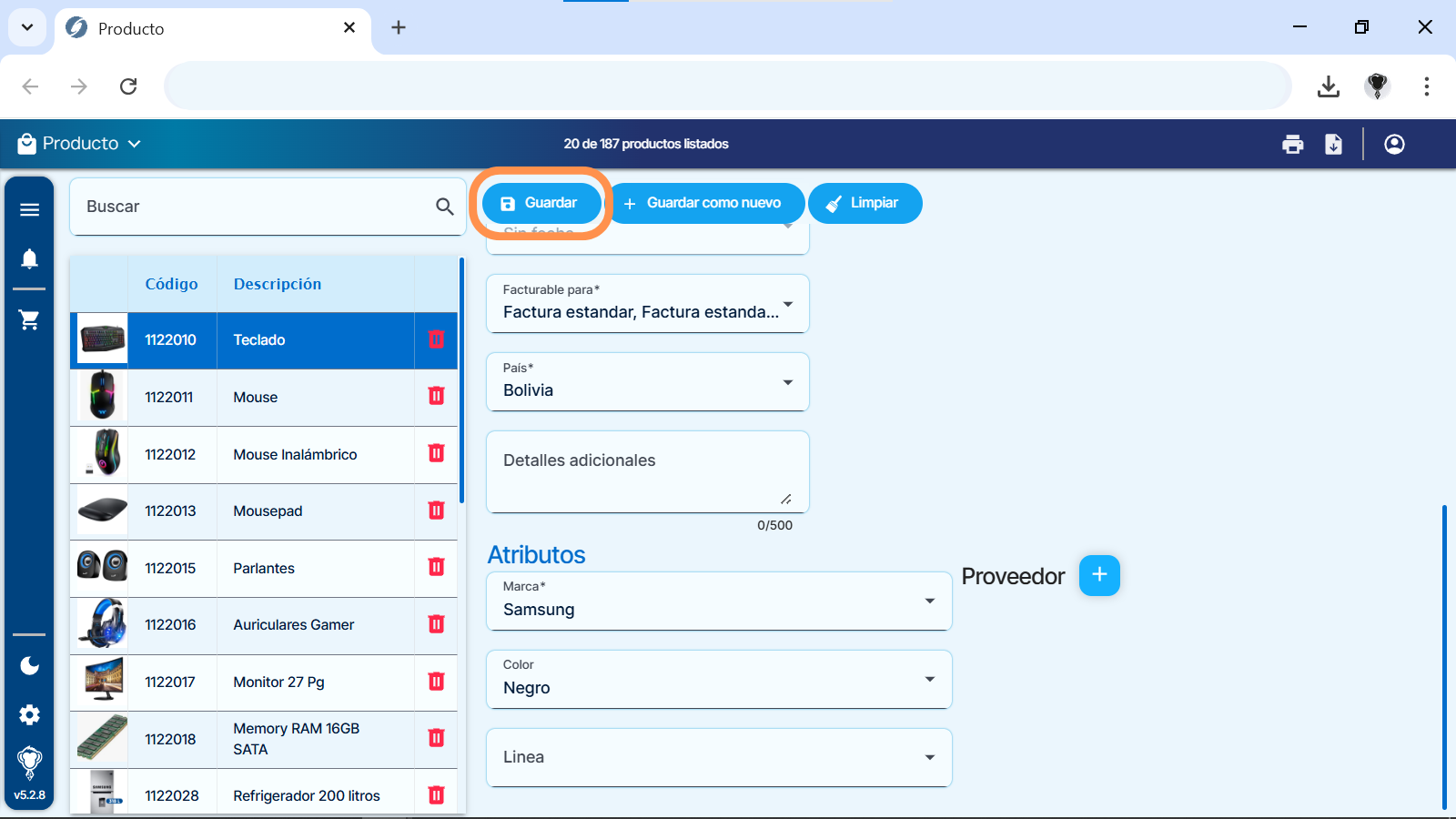 4) Una vez seleccionados los atributos para el producto, hacemos clic en “Guardar“.